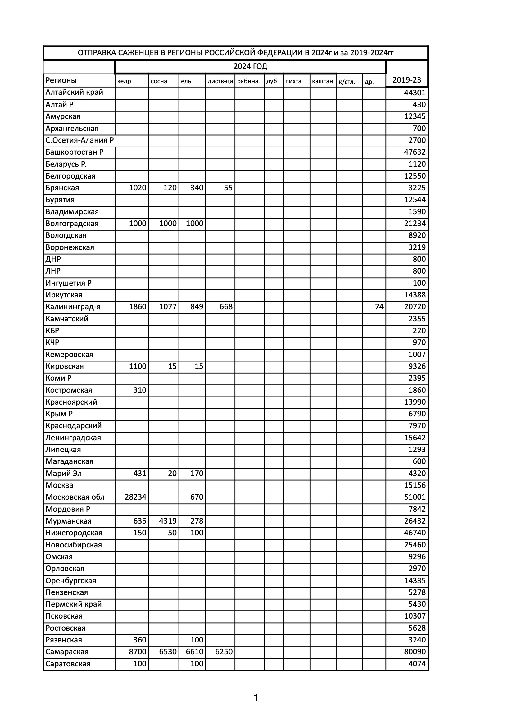 - 2019-24 год – 3,0 млн кедров и 0,1 млн других деревьев;
